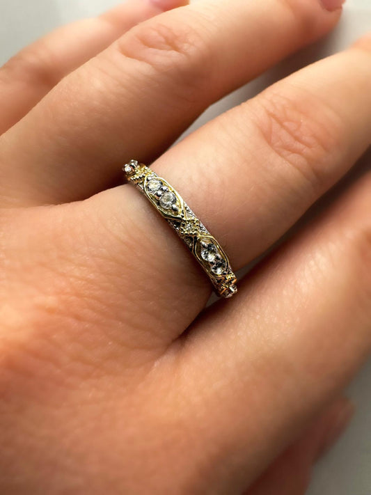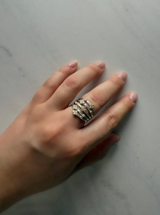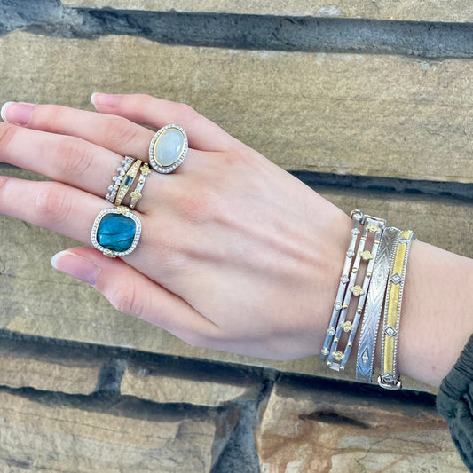 Mixed Metal Five Row Ring with Diamonds