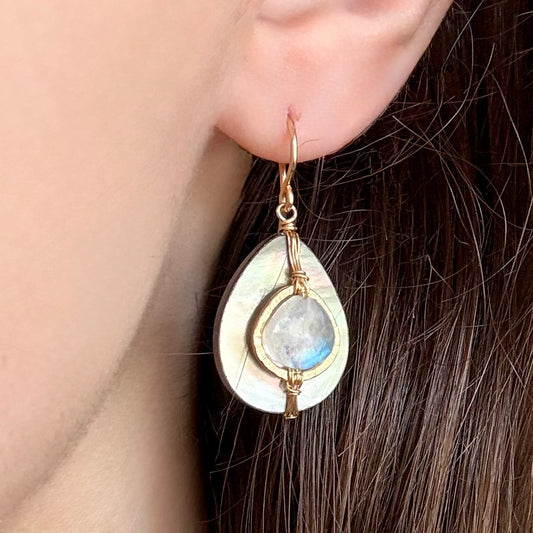 Rainbow Moonstone and Blue Topaz Vermeil Necklace