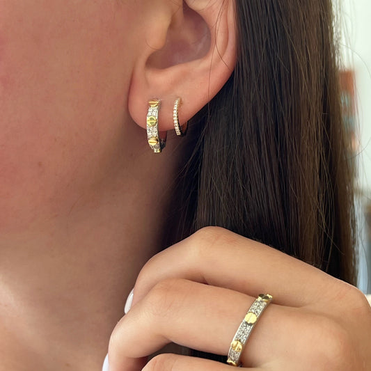 Small Mixed Metal Diamond Pave Nail Head Hoop Earrings