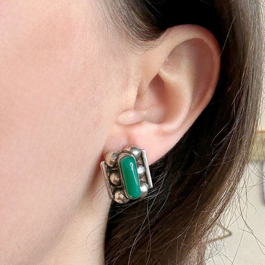 Vintage Green Onyx & Silver Earrings