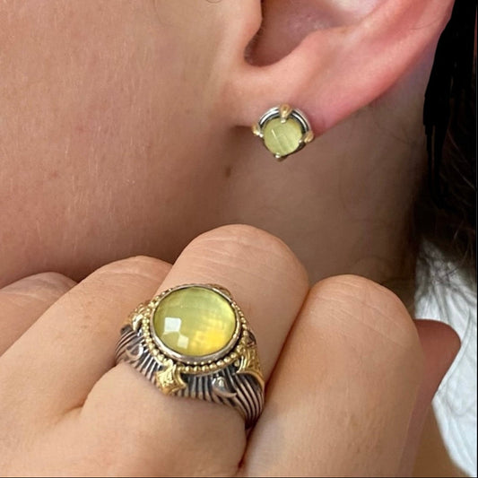 Yellow Agate Mixed Metal Ring