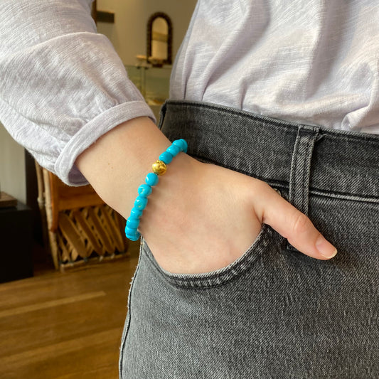 Round Sleeping Beauty Turquoise Stretch Bracelet