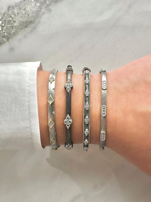 Sterling Silver Delicate Provence Beaded Quad Bangle