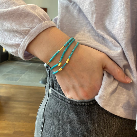 Turquoise & Gold Tubes Stretch Bracelet