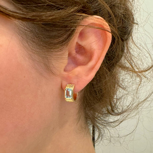 Blue Topaz Chunky Huggie Earrings