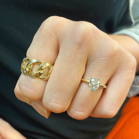 Curb Chain with Diamonds Ring