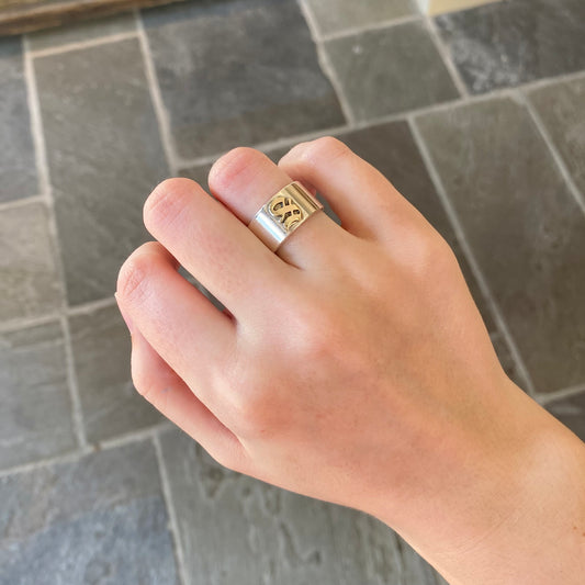 Silver Band with Gold Initial "M" Ring