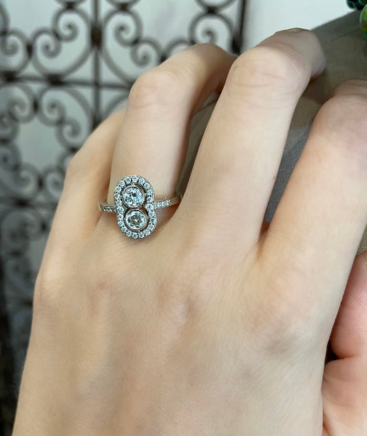 Vintage Inspired Double Diamond Halo Ring
