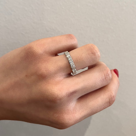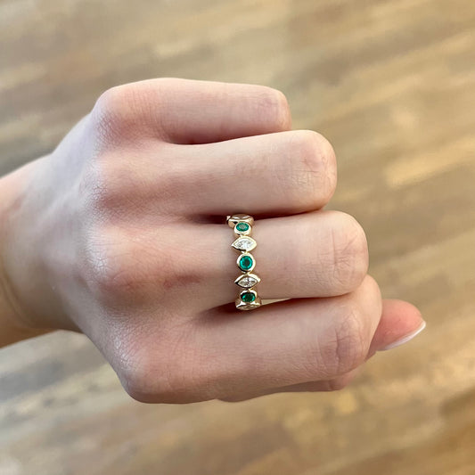 Alternating Round & Emerald Cut Diamond Anniversary Band