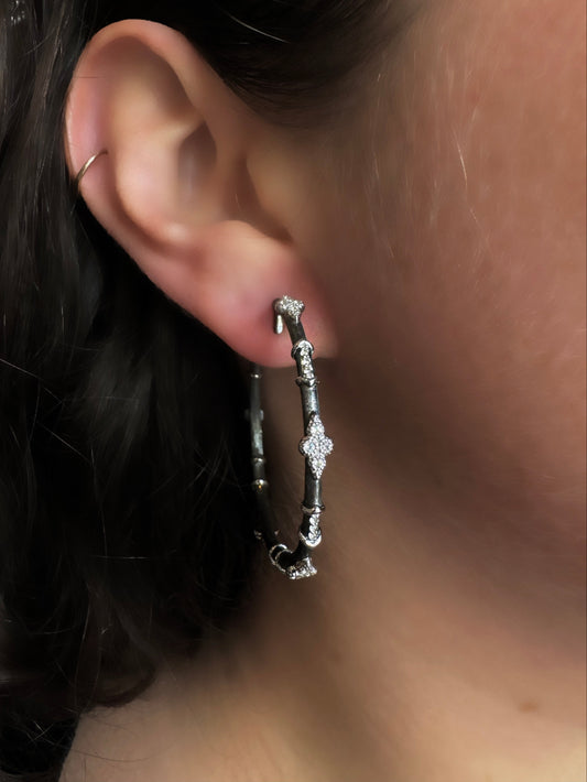 Silver Large Moroccan Hoop Earrings with White Topaz