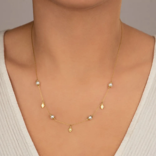 Pearl & Gold Nugget Pendants on Gold Link Necklace