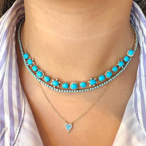 Turquoise Heart and Diamond Halo Necklace