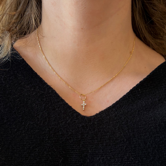 Pointed Prong Set Diamond Mini Cross Charm