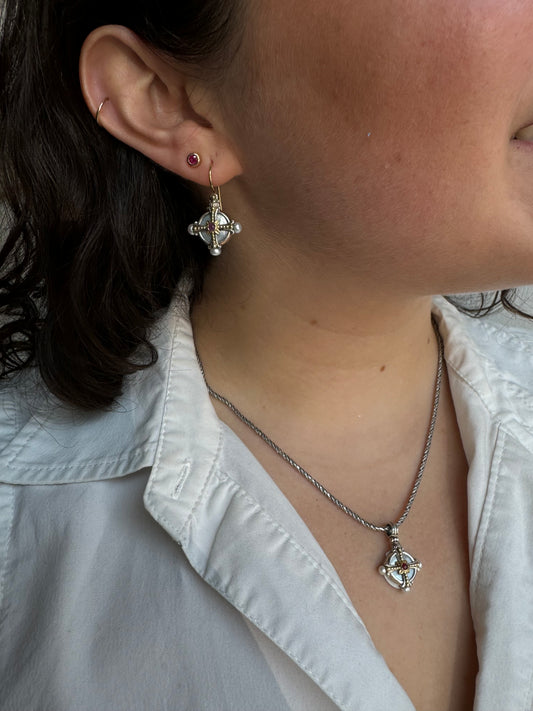 Oxidized Silver Diamond and Sapphire Cross Charm