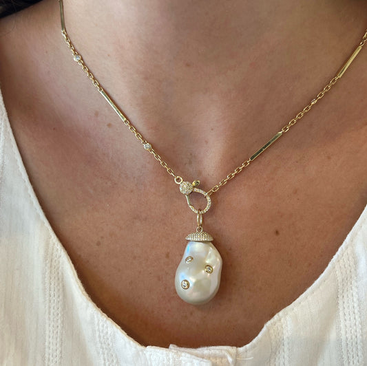 Pearl & Diamond Pendant with Black Rhodium Bezel