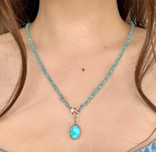 Diamond & Sky-Blue Topaz Puff Heart Pendant