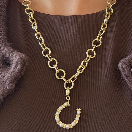 Lucky Horseshoe Charm with Pearls & Diamonds