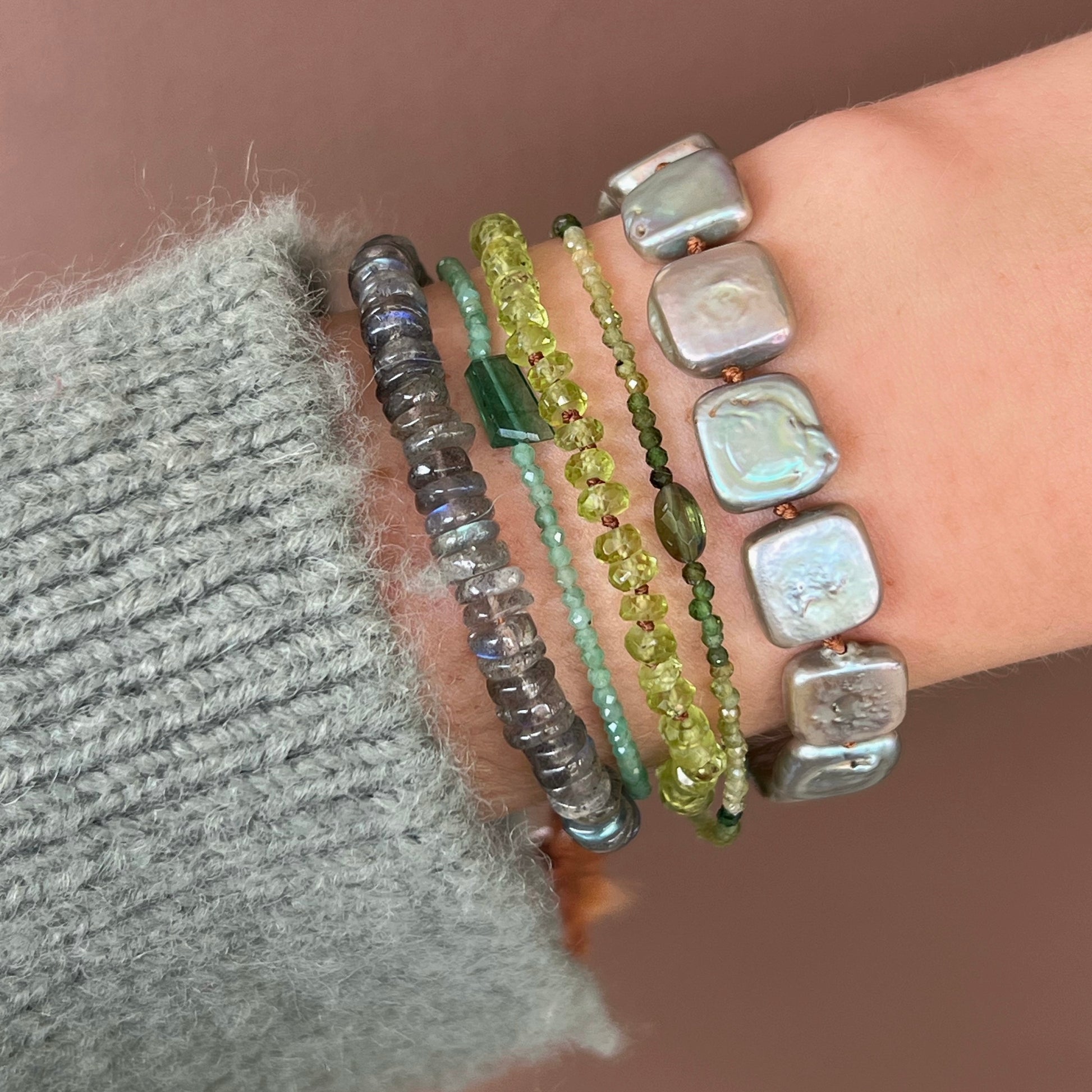 Beaded emerald bracelet with sterling silver lobster claw clasp