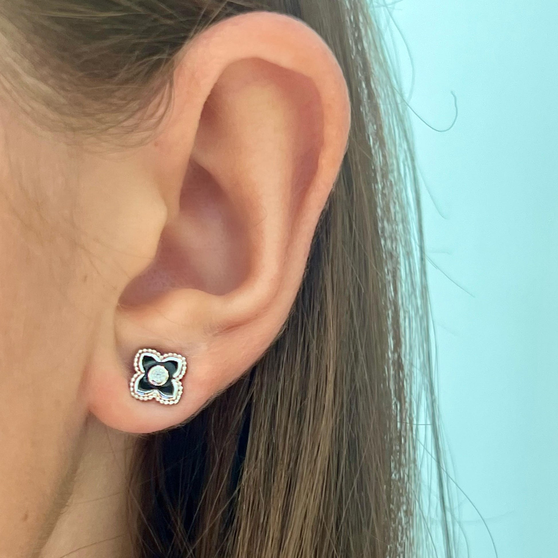 Black Enamel CZ Flower Studs
