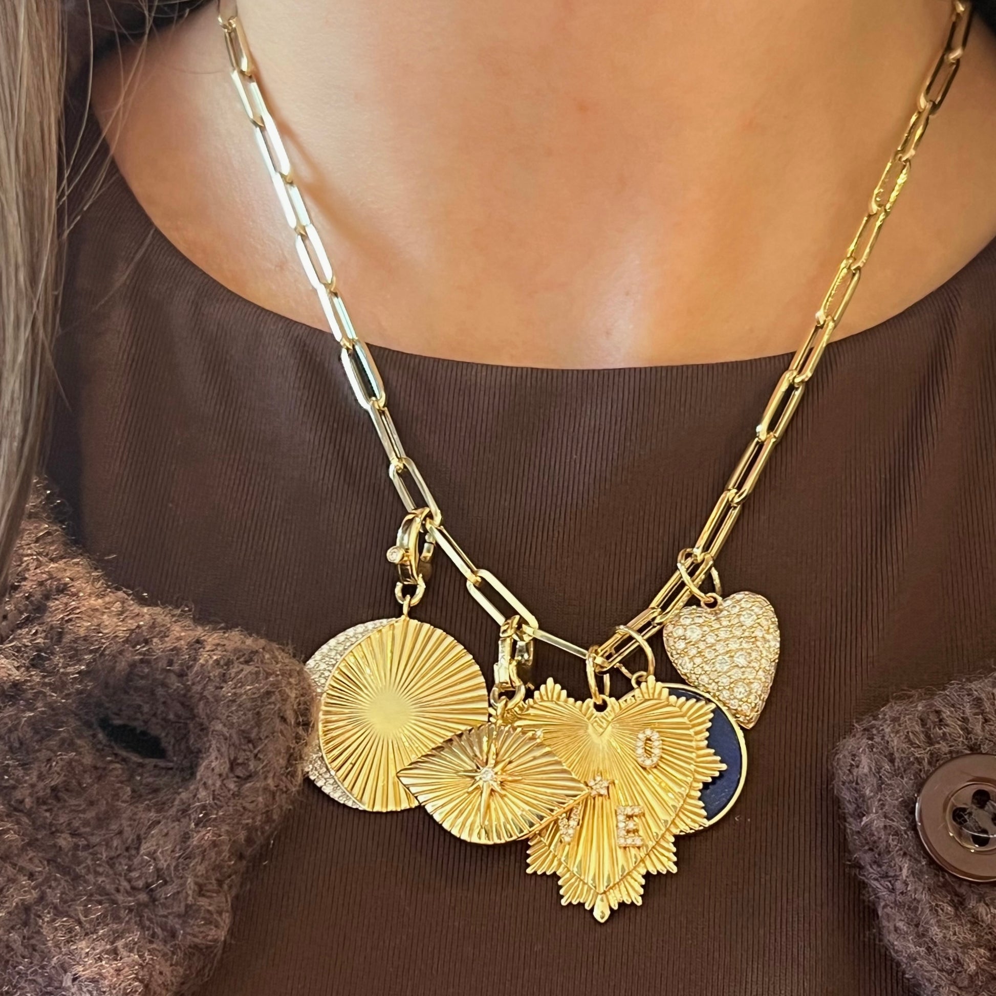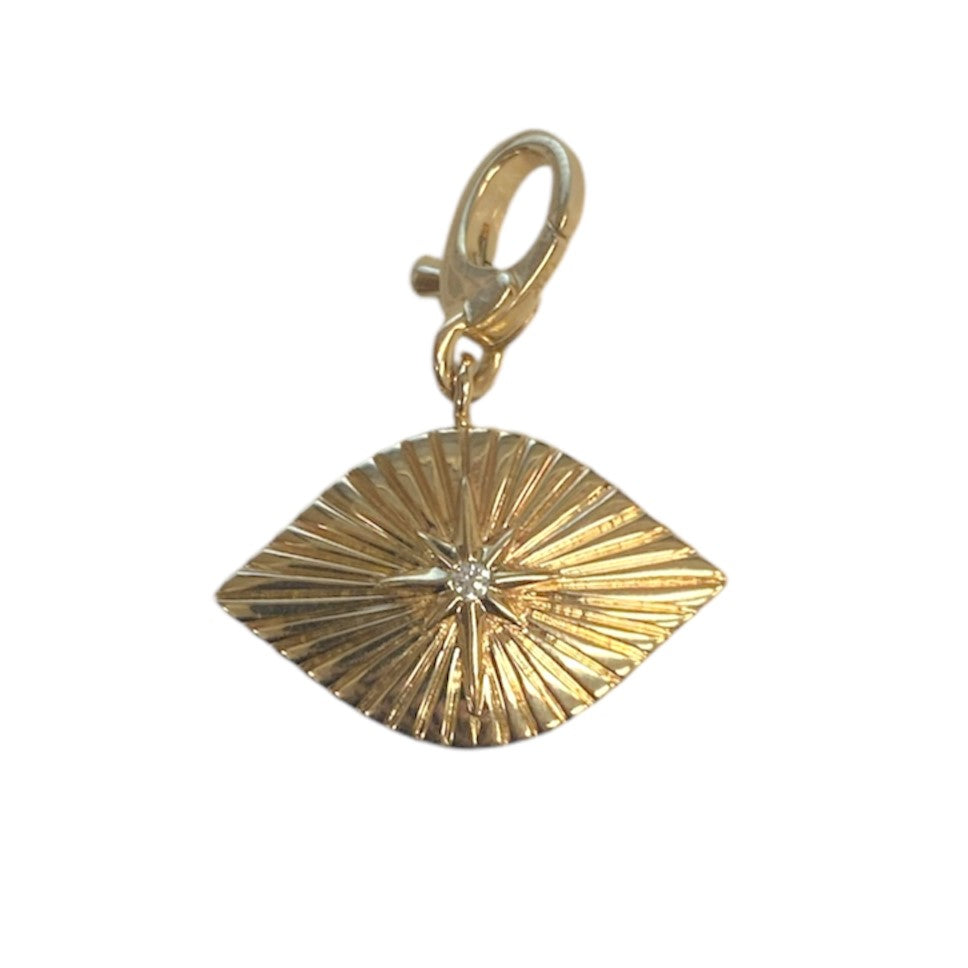Double sided diamond and blue sapphire evil eye charm with hidden diamond
