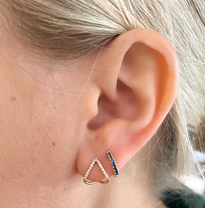 Our diamond chevron huggie features .11 carats of diamonds set in 14k gold
