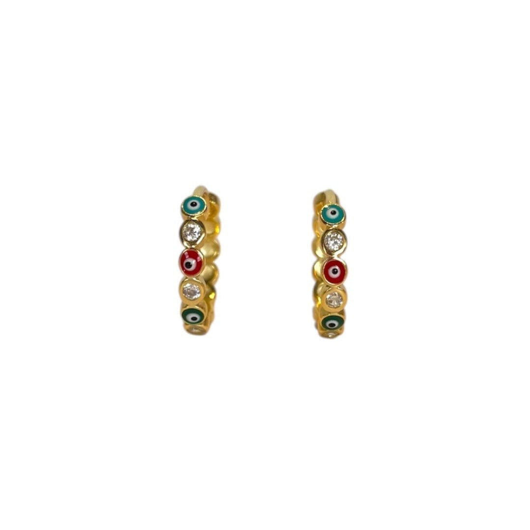 Multi Color Evil Eye Gold Vermeil Huggie Earrings