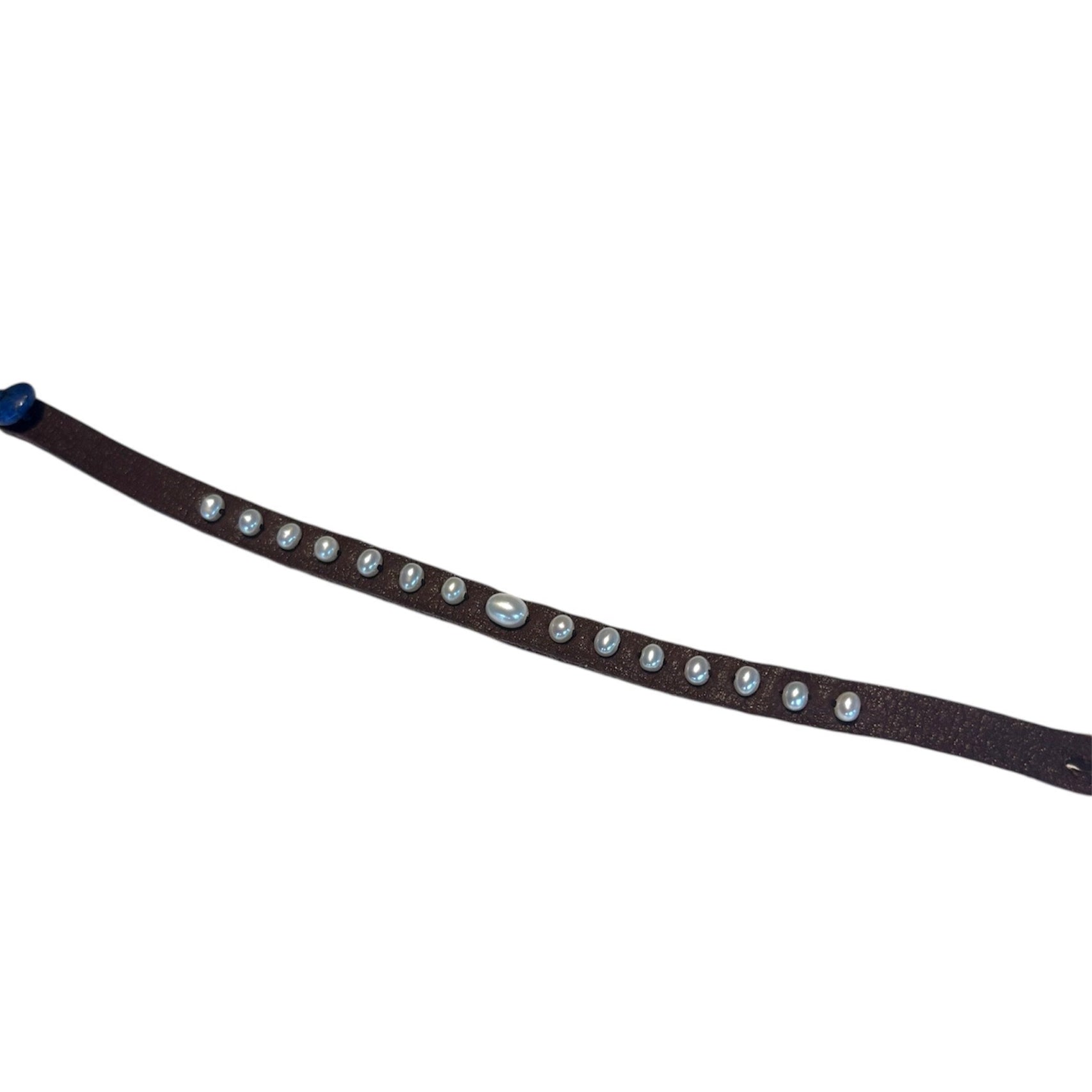 Keshi Pearls on Choc. Deer Leather Bracelet w/ Lapis Button