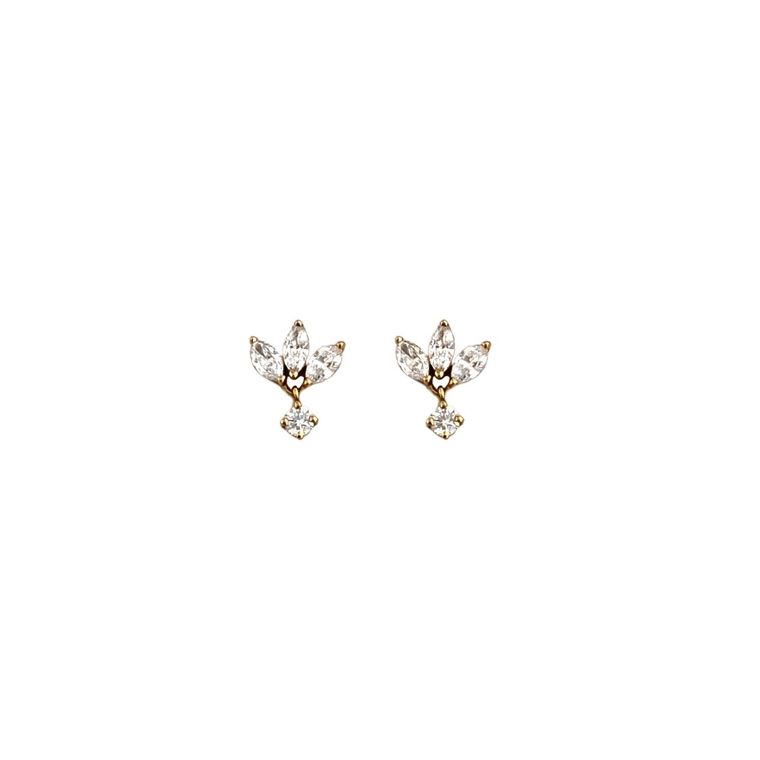 14k Yellow Gold Marquise and Round Diamond Dangle Stud Earrings
