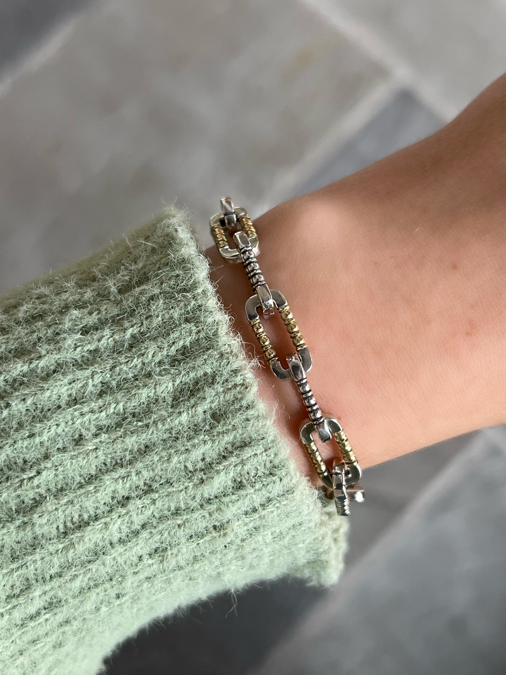 Mixed metal beaded paperclip bracelet with lobster claw clasp
