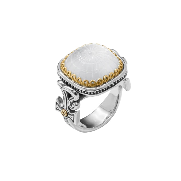 Square mother of pearl doublet set in sterling silver with 18kt yellow gold accents