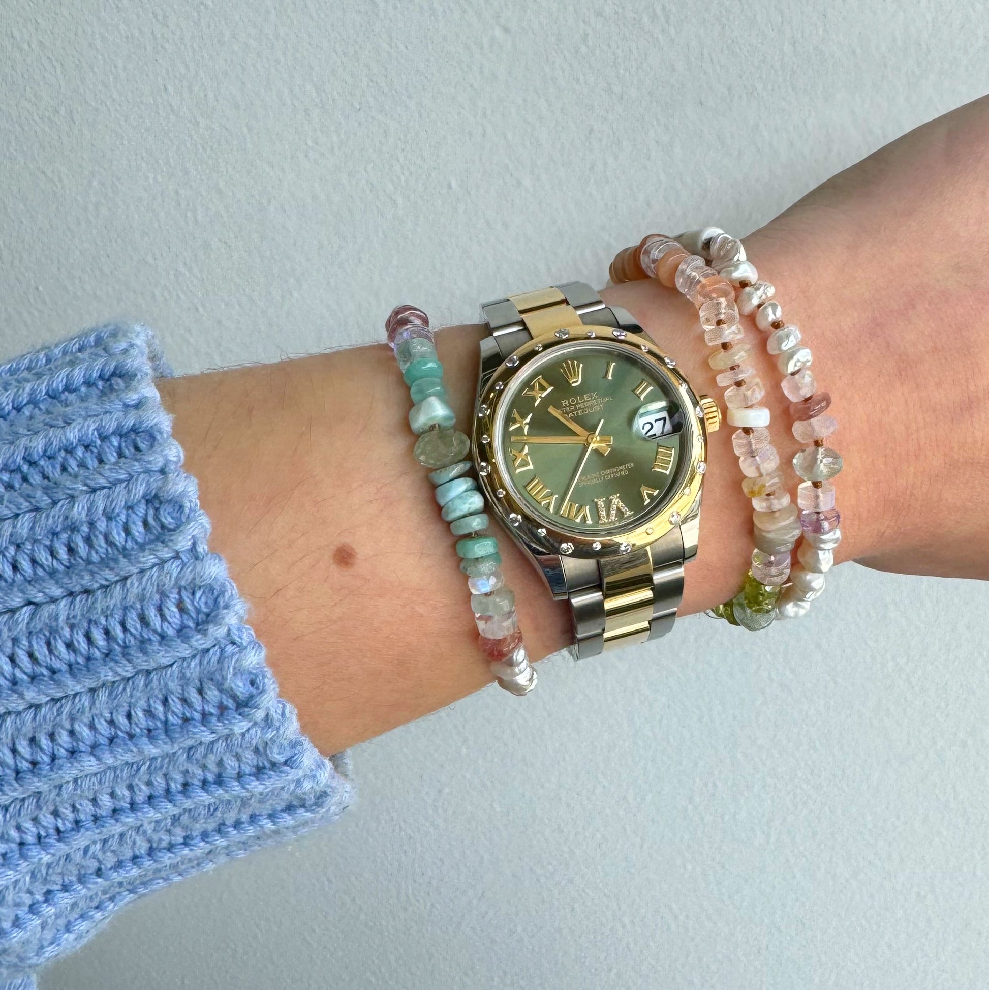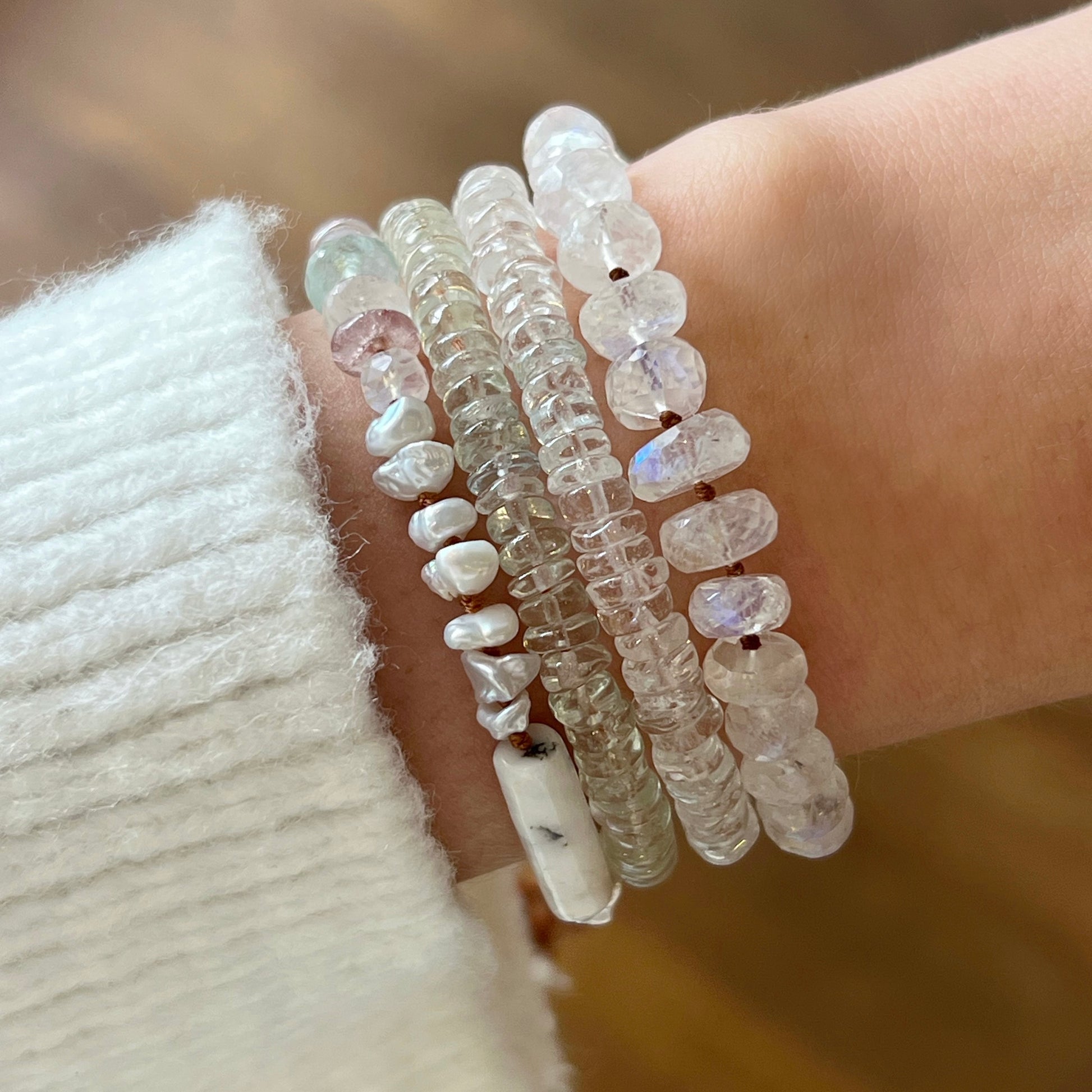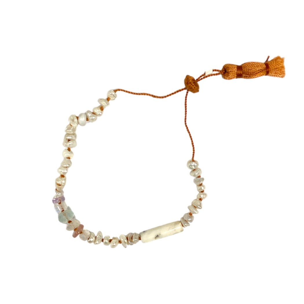 Adjustable freshwater pearl gemstone mix tassel bracelet