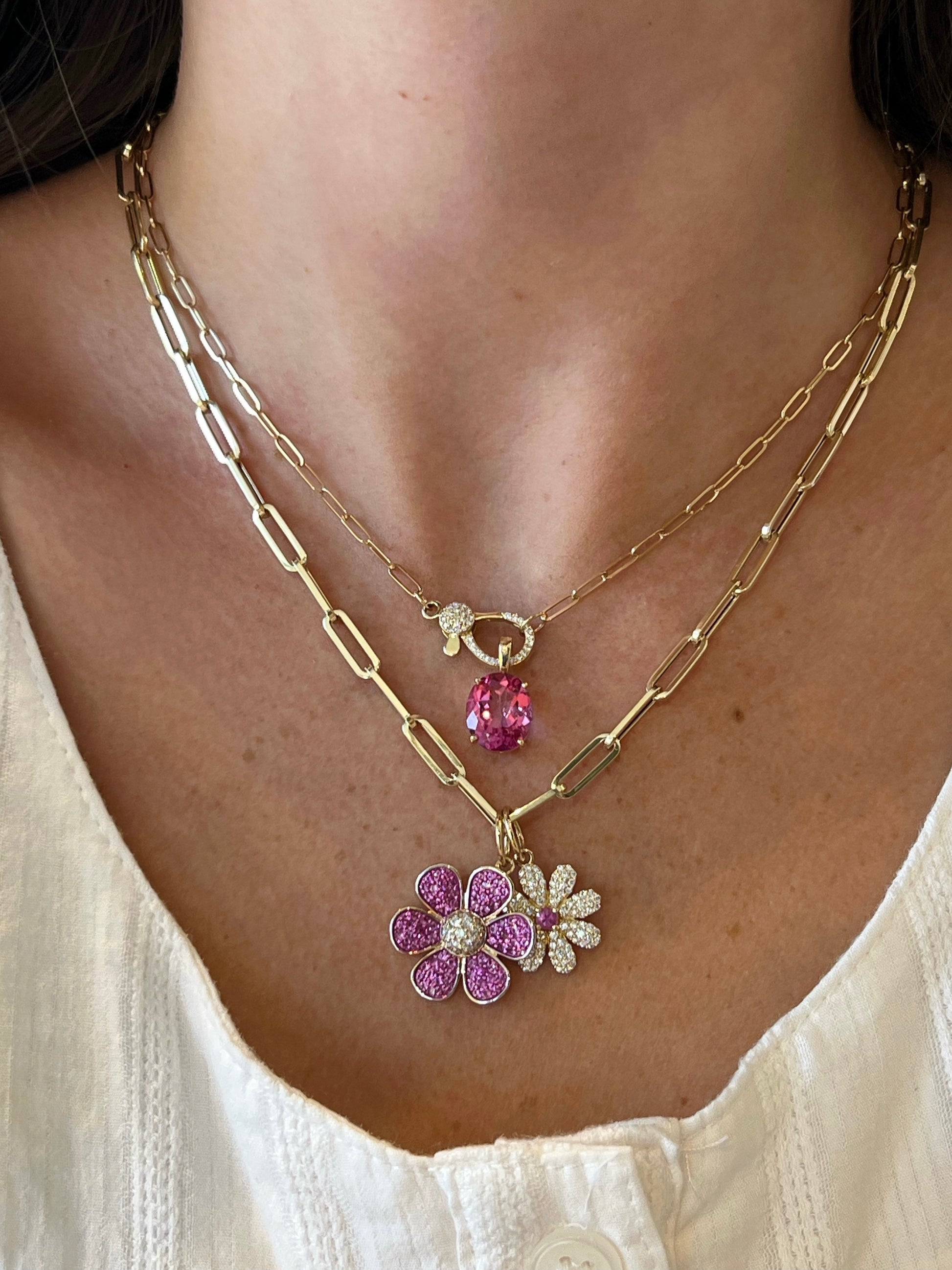 Pink Sapphire & Diamond Pave Flower Pendant