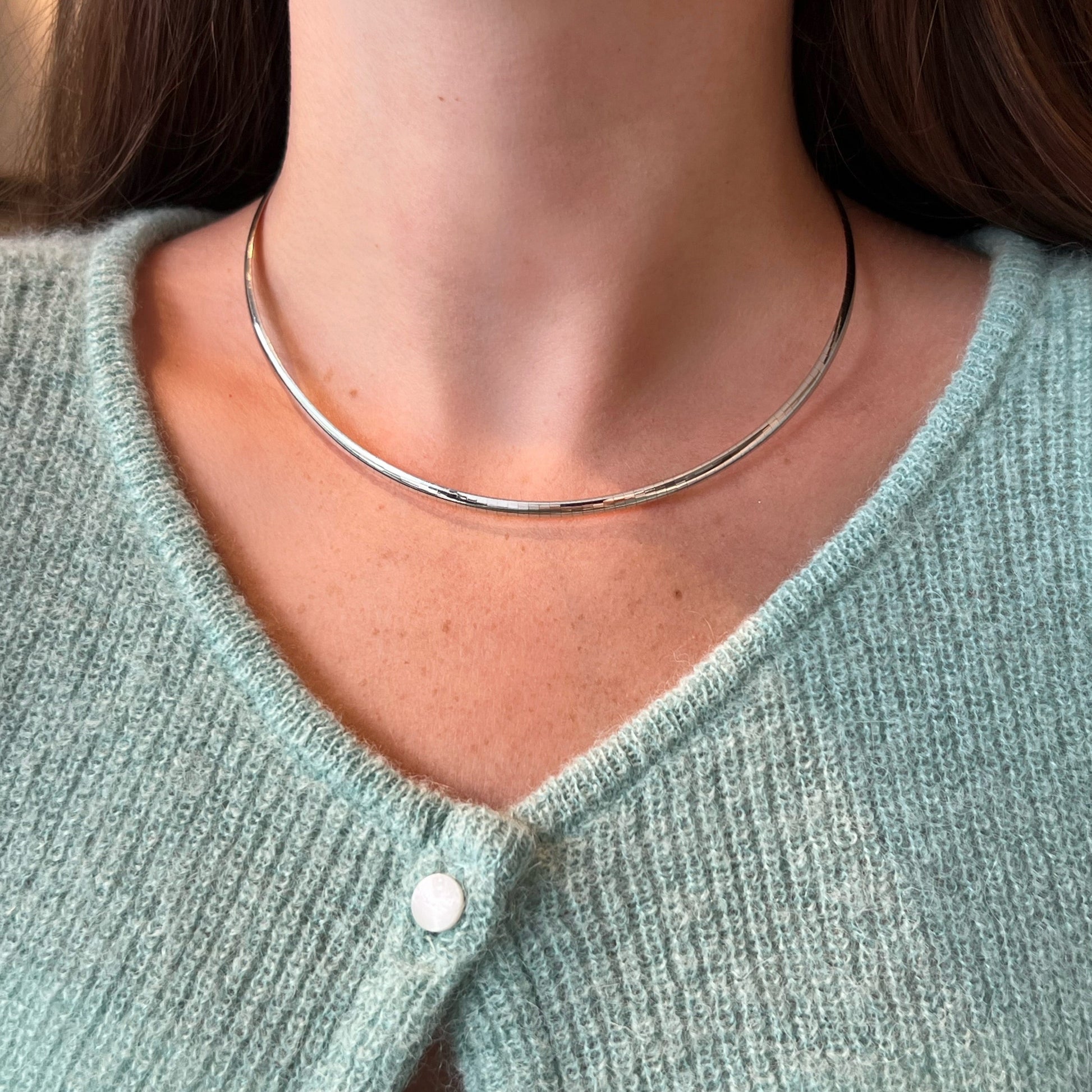 Reversable omega with 14kt yellow gold on one side and 14kt white gold on the other
