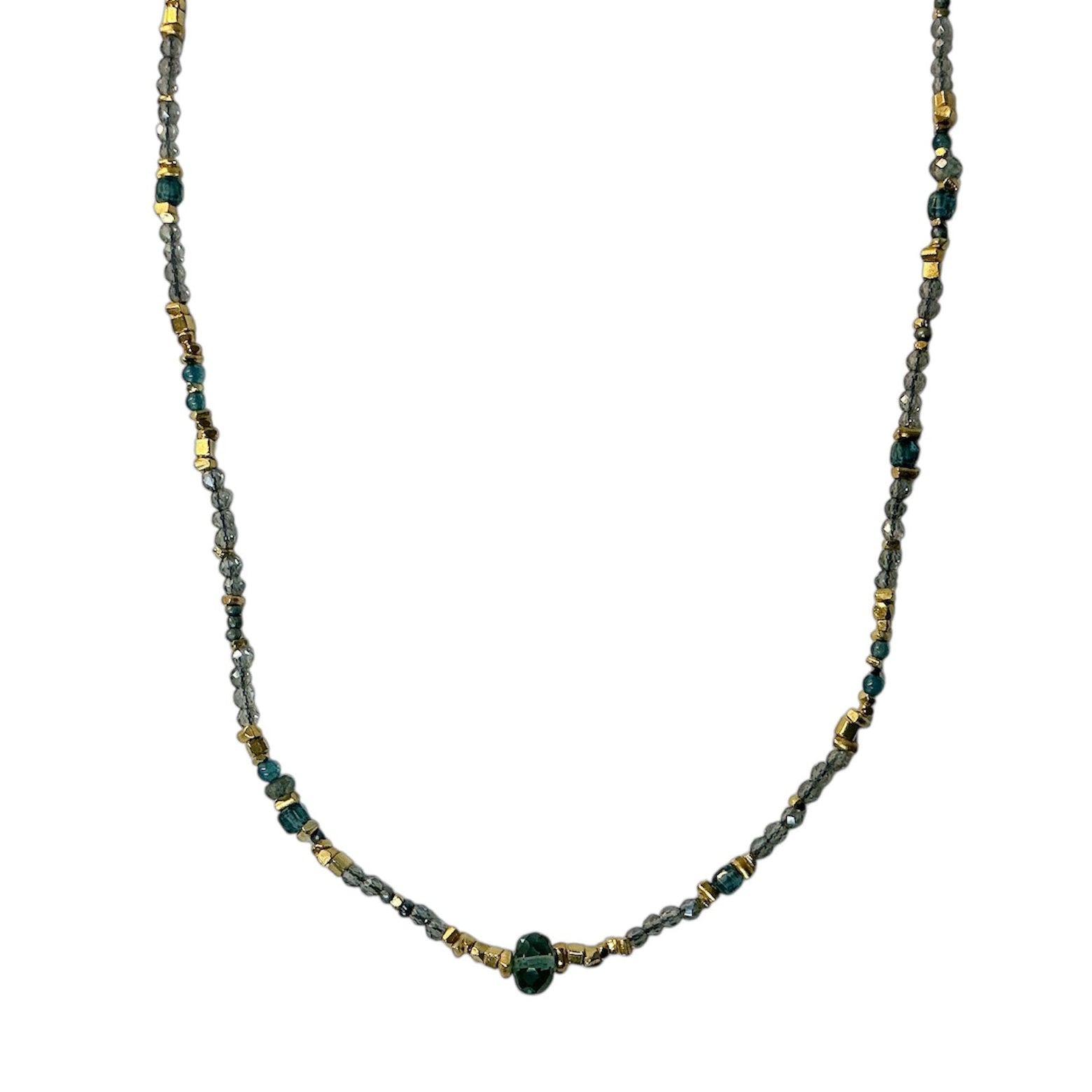 Crystal beads in a teal mix and gold fill bead necklace
