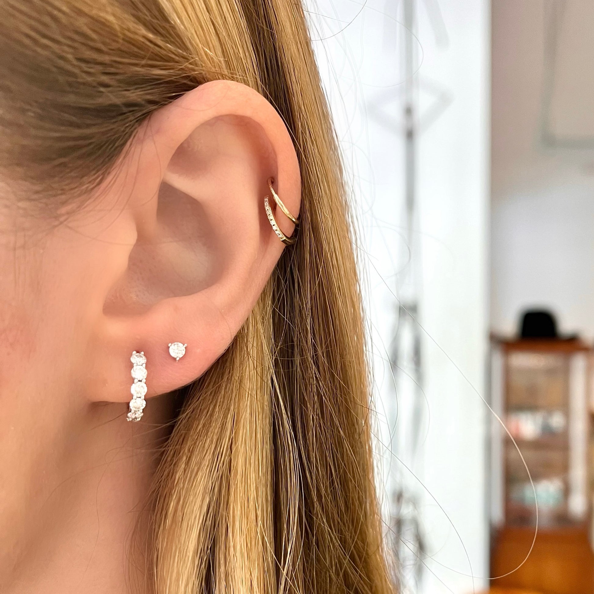 White gold diamond huggies