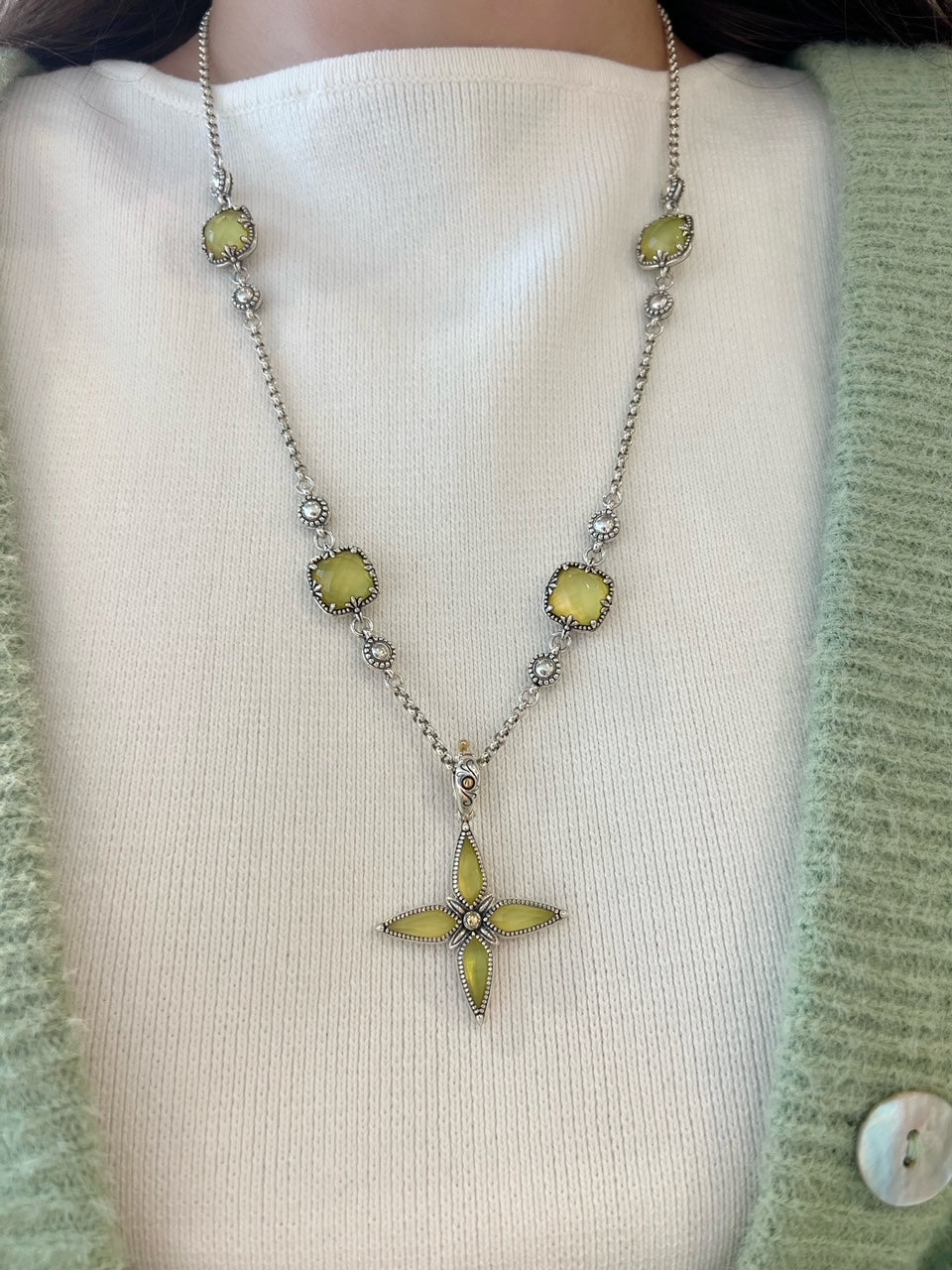 This sterling silver pendant features yellow agate and 18k yellow gold details.