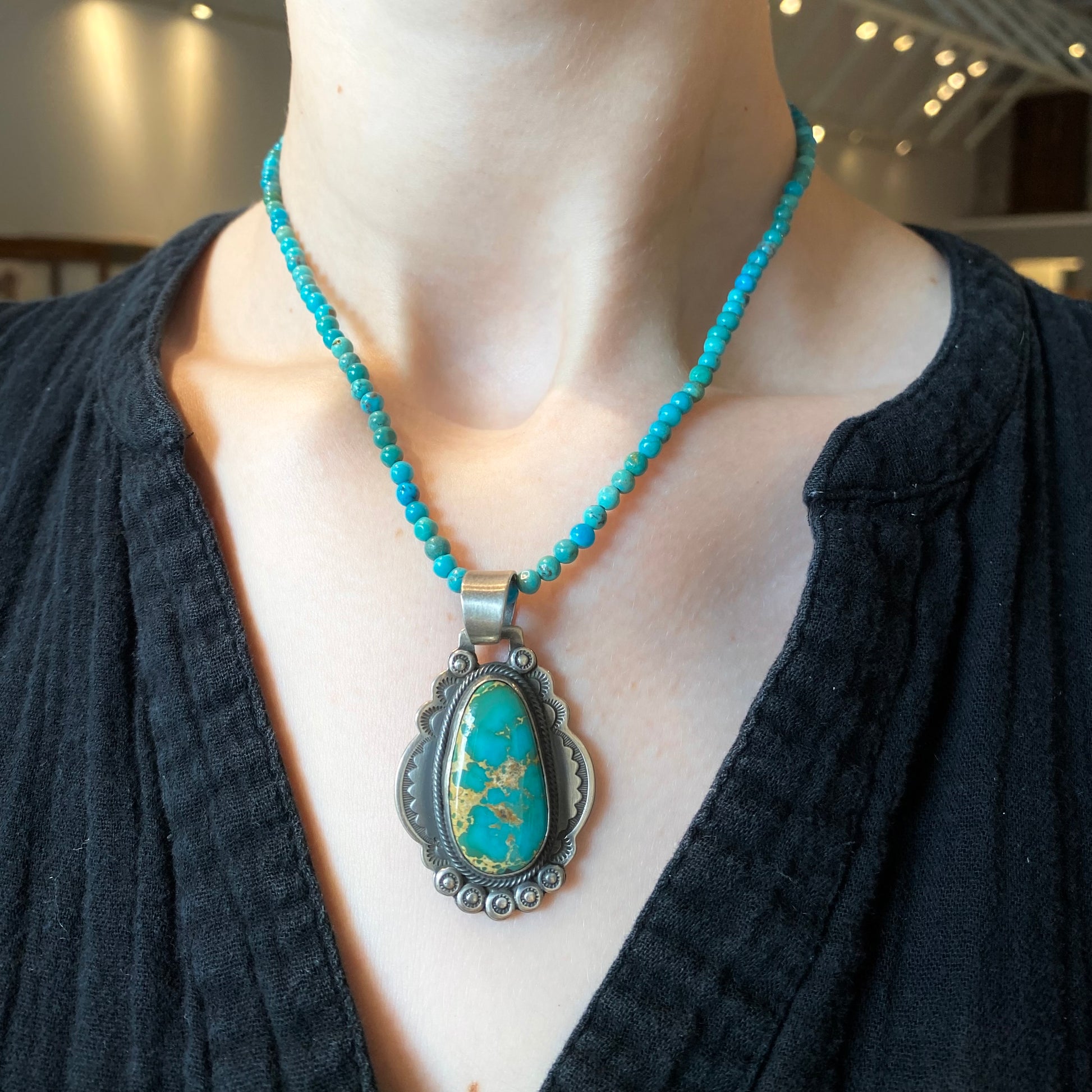 Vintage turquoise pendant bezel set in sterling silver. Artist hallmark "KS" stamped on the back.