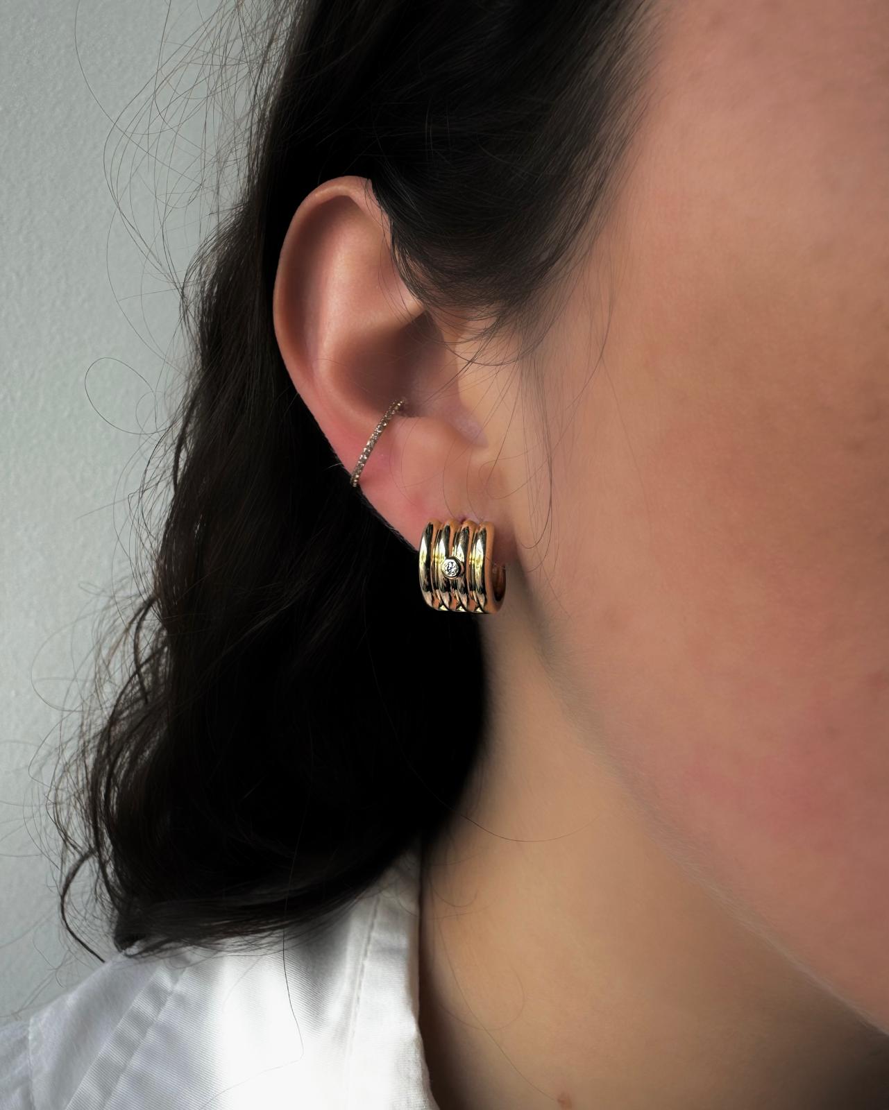 14kt yellow gold wide fluted huggie earrings with bezel set round diamond